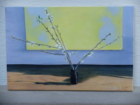landete auf einer Leinwand und entlockte am selben Abend meinem Mann einen erstaunten und anerkennenden Blick. Seither male ich, wie Ihr hier sehen könnt.